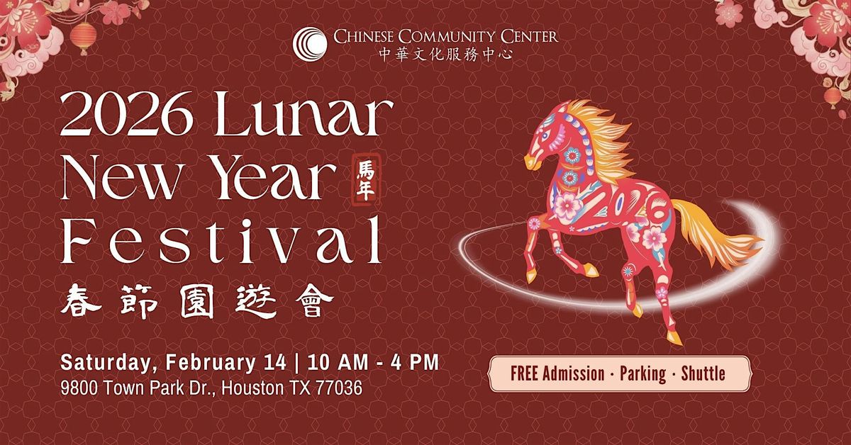 Join the Chinese Community Center (CCC) for one of Houston’s most exciting cultural traditions of the year! Since 2003, this festival has brought thousands together for a vibrant celebration of culture, community, and the Lunar New Year. In 2026, our Lunar New Year Festival falls on Valentine’s Day, making this year’s experience extra special with unique activities for families, friends, and couples.