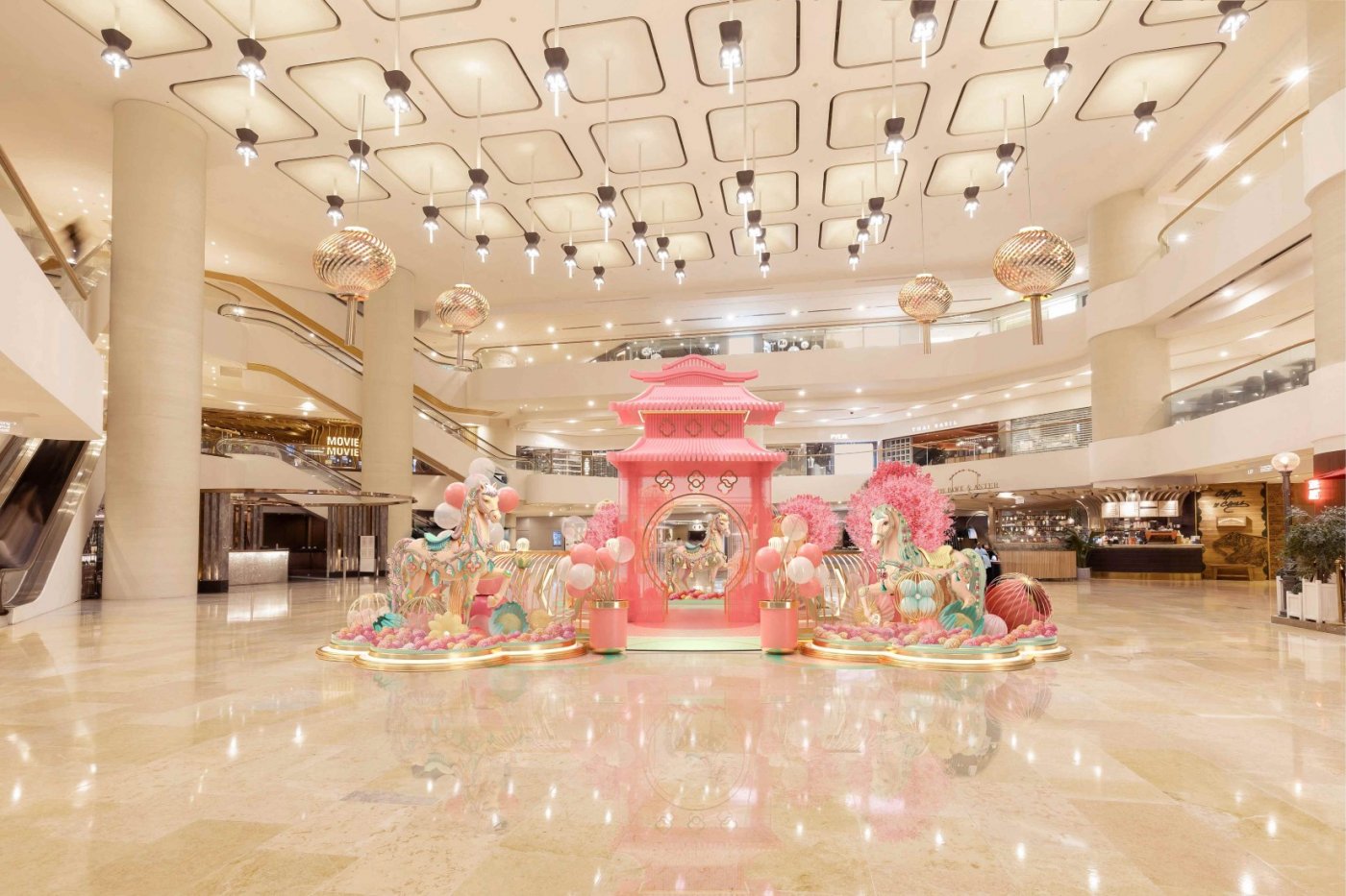 Embrace the Year of the Horse as Pacific Place and Starstreet Precinct unveil Whimsical Gallop — a festive journey of blooming fortune, embroidered artistry and joyful rewards within an enchanting garden. From 5 February to 3 March, the celebrations unfold in a dreamlike Chinese‑inspired garden, bathed in a serene pink palette where imagination and elegance are in full swing. Majestic horses animate the landscape, led by a magnificent 3.5‑metre‑tall creation adorned with exquisite detailing by Hong Kong’s embroidery artisans YLYstudio, celebrated for their meticulous craftsmanship and ability to transform traditional needlework into contemporary art forms.