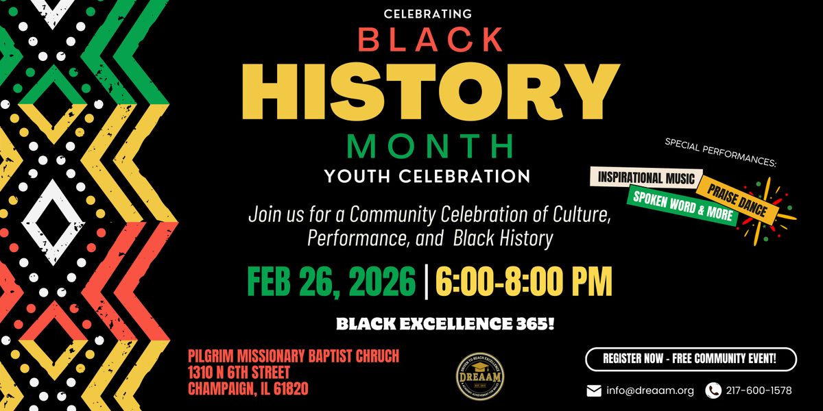 Info: Enjoy an inspiring lineup of performances in a warm, community setting, including the DREAAM Choir, performing uplifting songs by talented youth; the Pilgrim Youth Choir, showcasing dynamic community talent; DREAAM Praise Dancers, delivering energetic and expressive dance; the Pilgrim Praise Dancers, bringing spirited energy and joy; spoken word artists, sharing powerful poetry and storytelling that honors Black history and culture; and the DREAAM Cheerleaders, performing high-energy routines full of spirit and excitement.