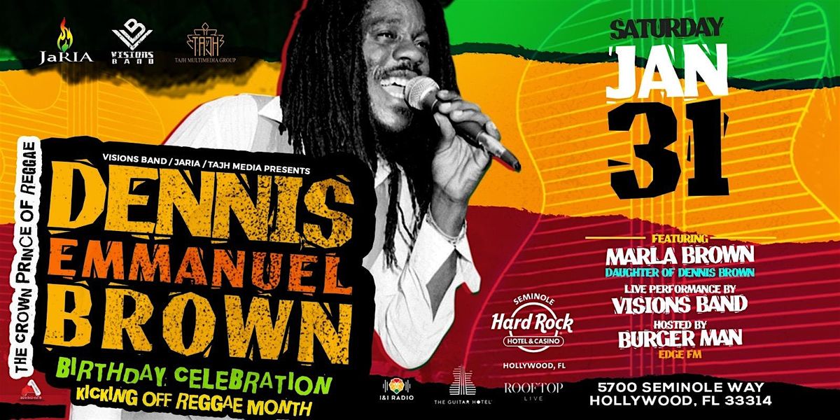 Birth Celebration for the Crowned Prince of Reggae.. Dennis Emmanuel Brown . Musical performance and tributes from Visions Band and Various artists . Music by Dj Radcliffe and Abhi Earthquake