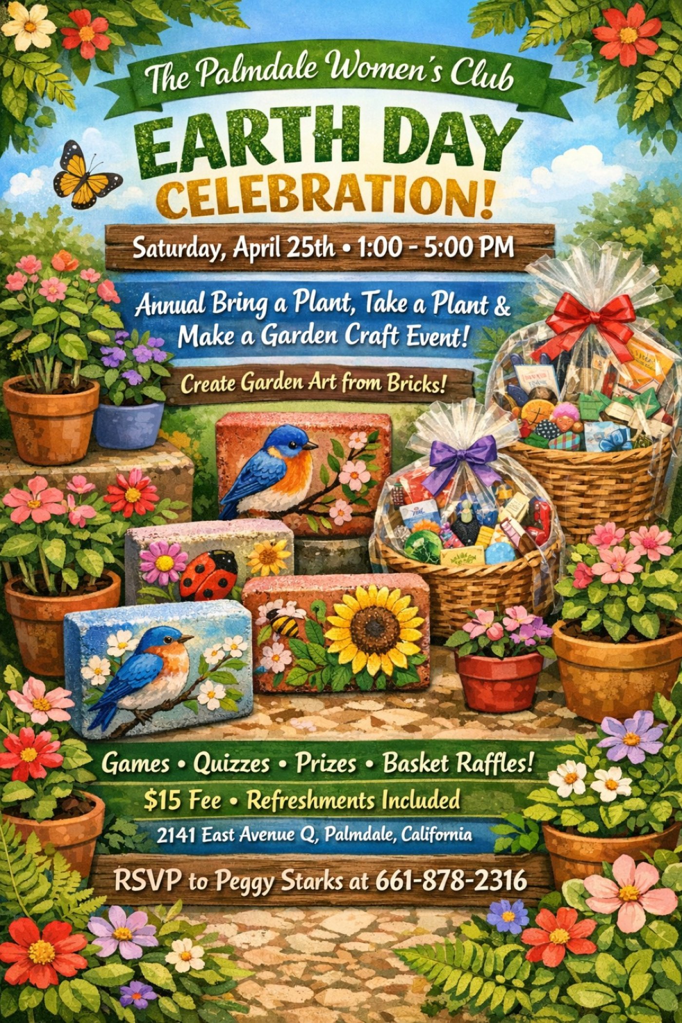Celebrating Earth Day with our 3rd annual Bring a Plant Take a Plant Make a Garden Craft Event! There will be Games. Quizzes, Prizes & Basket Raffles!