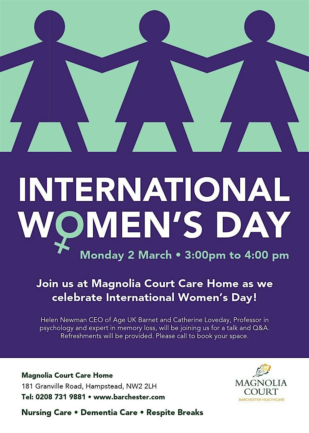 Join us at Magnolia Court Care Home for an inspiring and thought-provoking afternoon in the company of two remarkable local women.