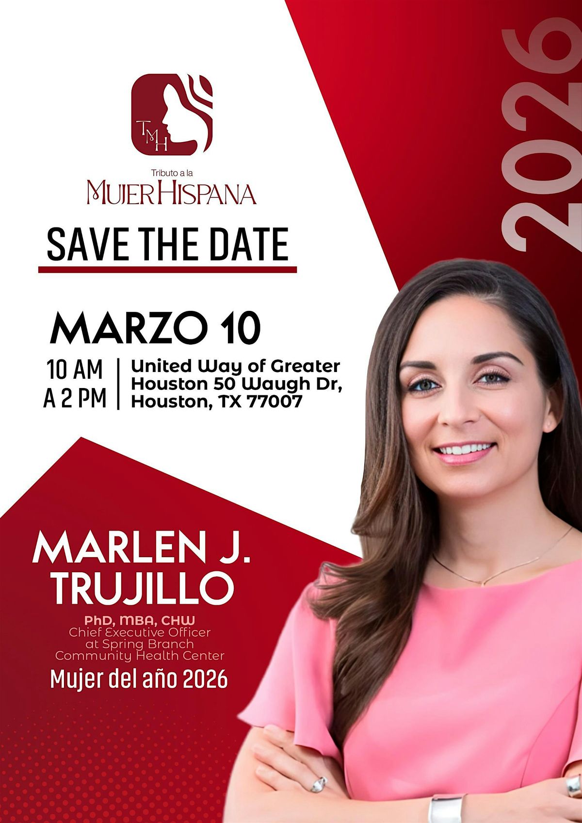This year, we proudly honor Dr. Marlen J. Trujillo, PhD, MBA, CHW, Chief Executive Officer of Spring Branch Community Health Center, as Woman of the Year 2026. Her leadership in public health and her commitment to equity and community well-being exemplify the spirit of Latina excellence this tribute celebrates.