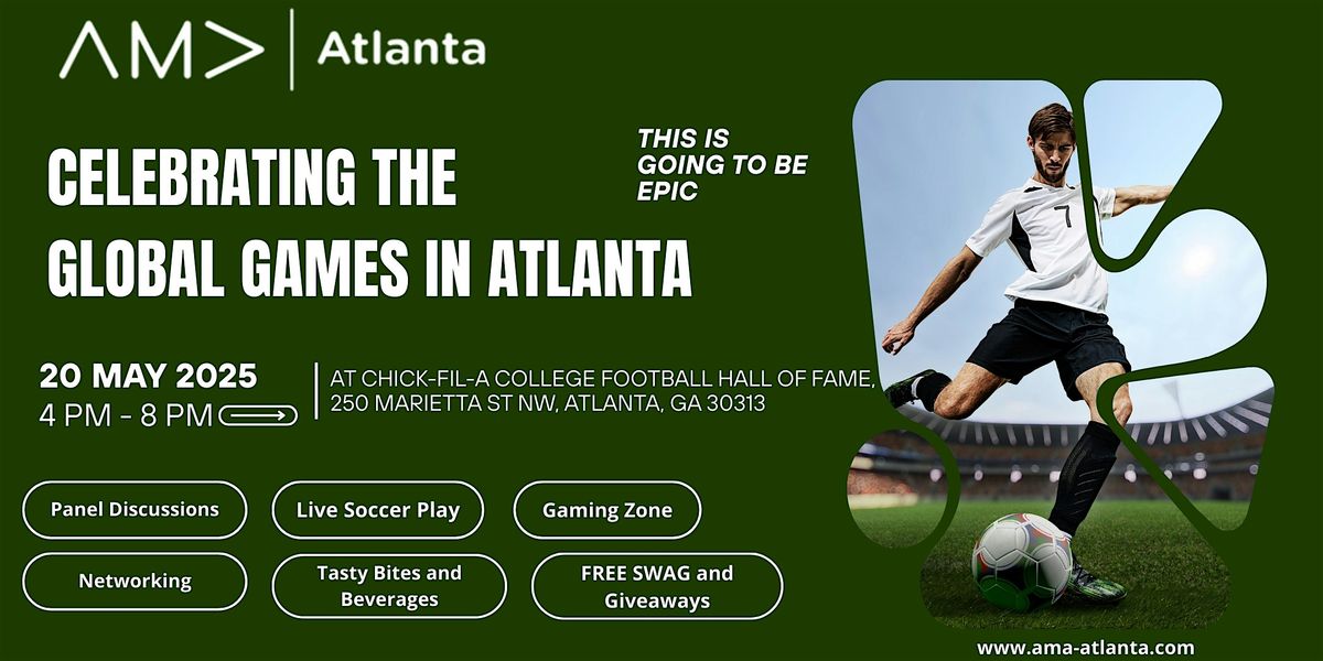 Join AMA-Atlanta as we kick off celebrating the Global Games coming to Atlanta! Set against the iconic backdrop of the Chick-fil-A College Football Hall of Fame, this dynamic evening brings together marketing professionals, global brands, agencies, and soccer fans for live interactive demonstrations, panel discussions with industry leaders, fun games, and networking over bites and beverages.