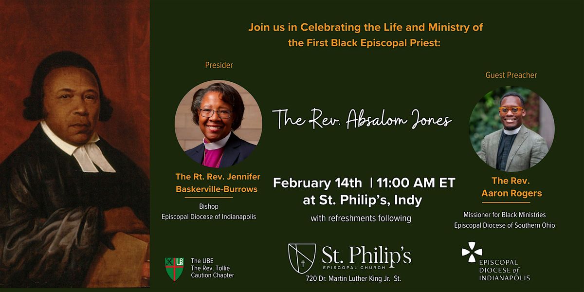 A celebration of the life and ministry of the Rev. Absalom Jones, the first Black priest ordained in The Episcopal Church, will take place at St. Philip’s in downtown Indianapolis on Saturday, February 14 at 11 a.m. Bishop Jennifer Baskerville-Burrows will preside, and the Rev. Aaron Rogers, Missioner for Black Ministries in the Diocese of Southern Ohio, will preach. Music will be led by a joint choir made up of St. Philip’s members and El Coro Latinoamericano of Christ Church Cathedral. A reception will follow the service. This event is co-sponsored by St. Philip’s, Christ Church Cathedral, and the Episcopal Diocese of Indianapolis.