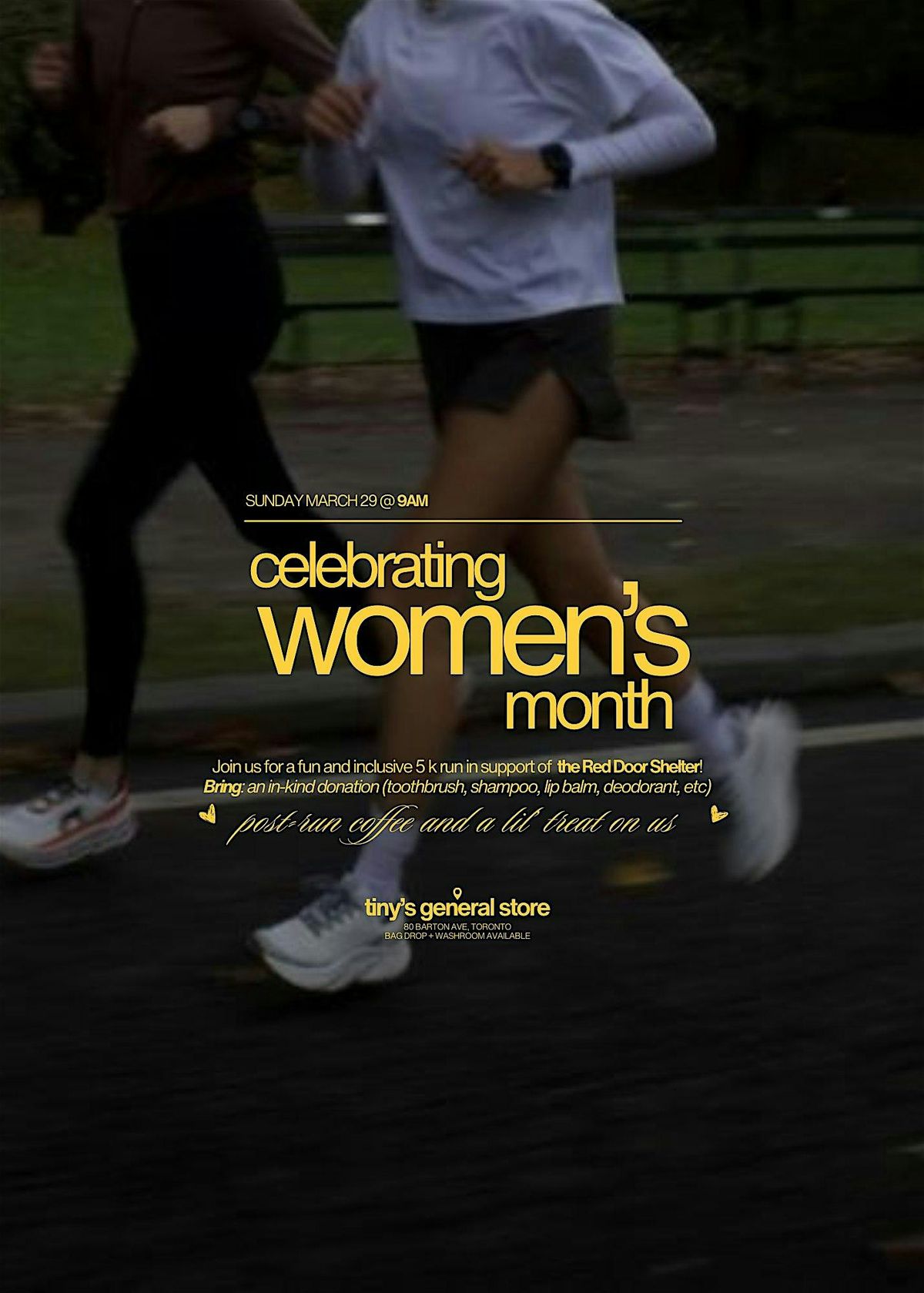 Come join us at Tiny's General Store on Sunday March 29 for a fun and inclusive women's only run!