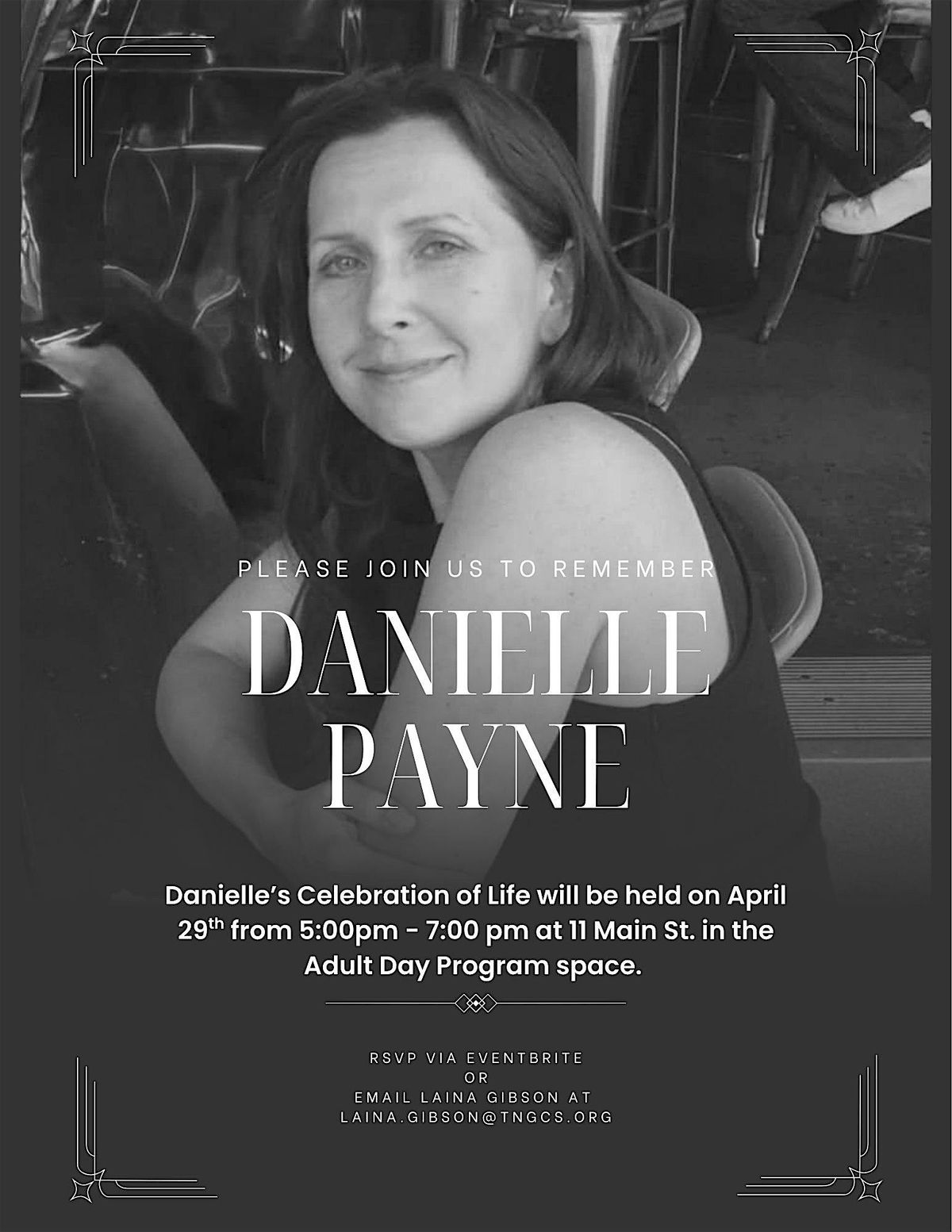 We will be gathering in the Adult Day Program (ADP) space at 11 Main St. to celebrate and remember Danielle. Please feel free to invite others who knew Danielle to this celebration of life.