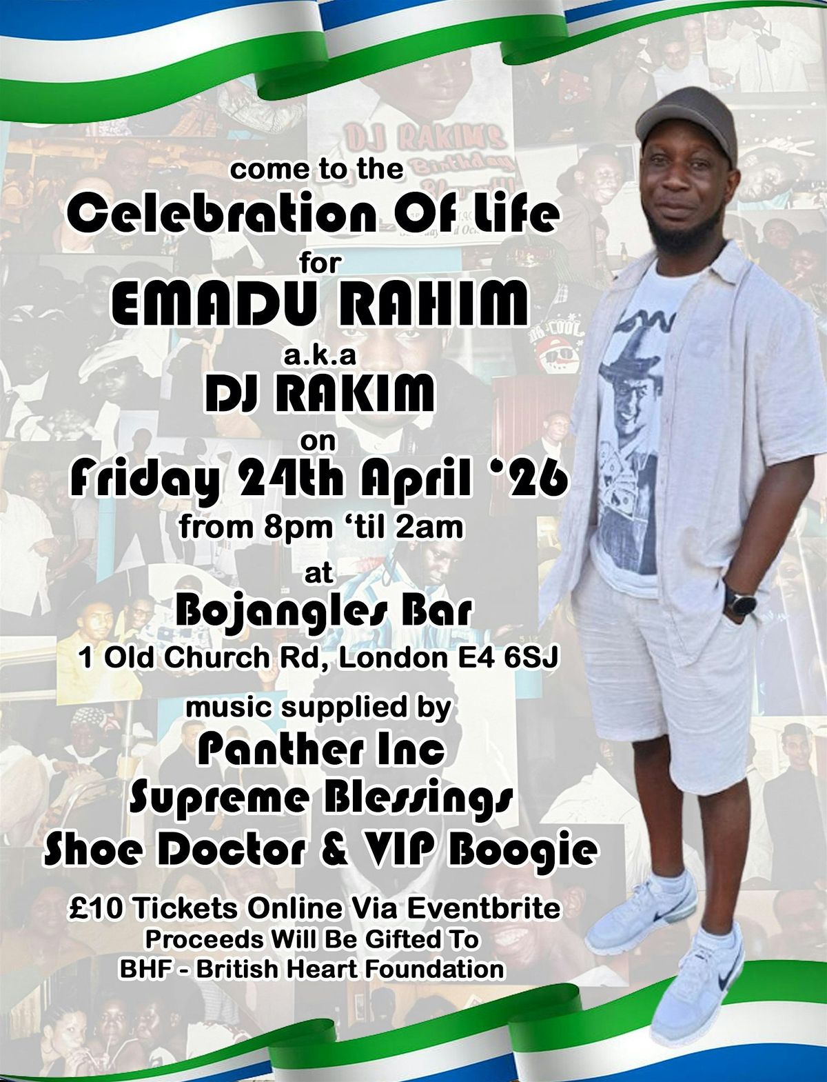 We come together at Bojangles to celebrate Emadu's life,