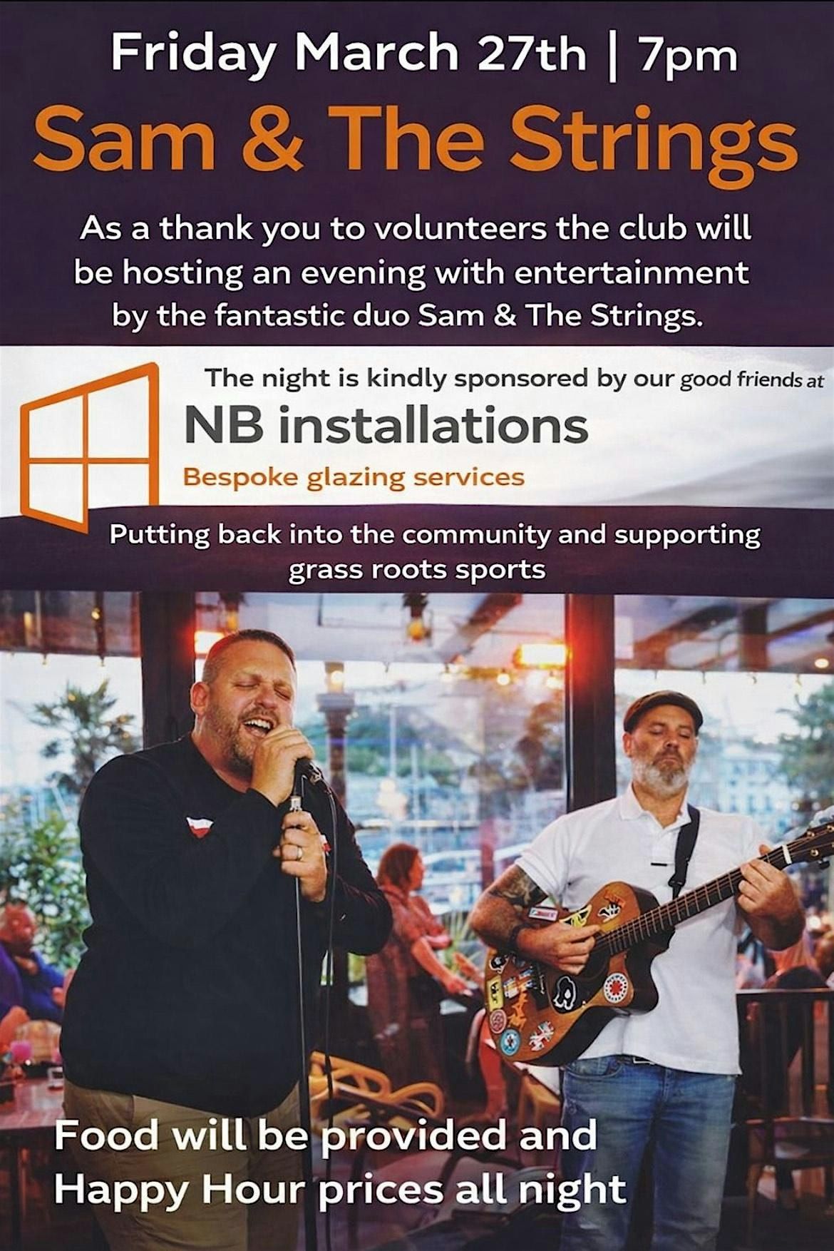 Enjoy live music from the brilliant Sam and the Strings, bringing the perfect soundtrack to an evening of fun and festivities.This wonderful event is kindly being sponsored by NB Installations.