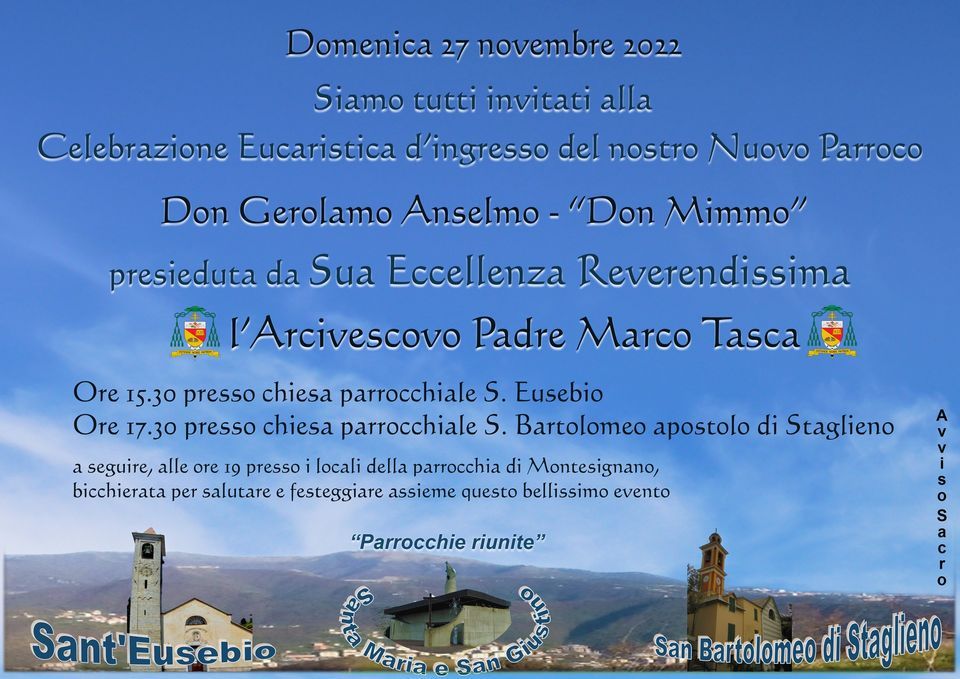 Domenica 27 novembre 2022Siamo tutti invitati alla Celebrazione Eucaristica d'Ingresso del nostro Nuovo Parroco