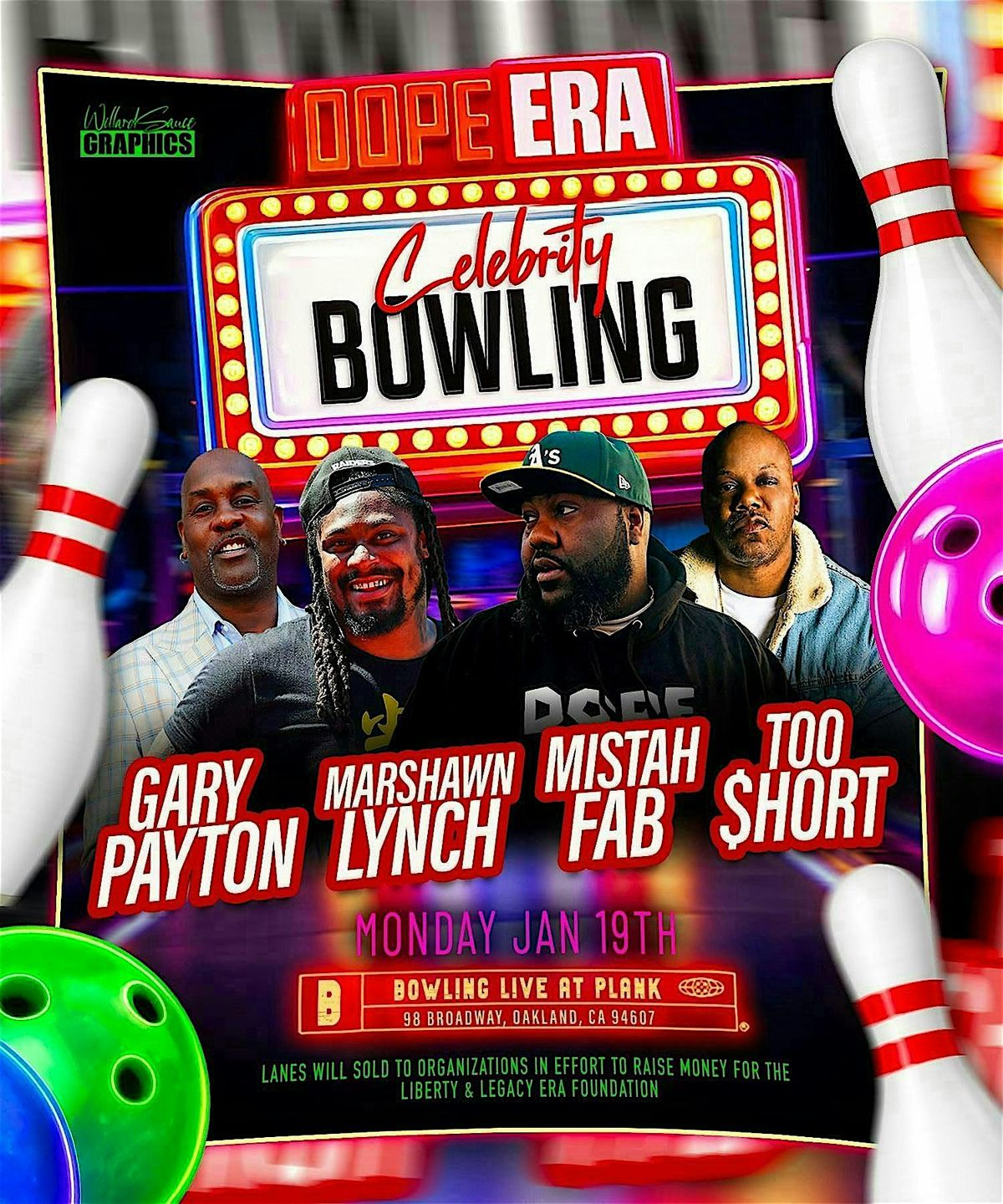Get ready to roll with Legendary Celebrities Marshawn Lynch, Gary Payton, Too$hort, & birthday man of the week: Mistah FAB at Plank for a night of strikes, spares, laughs, and plenty of fun! Join us on January 19, 2026 at 9:00 PM (Pacific Time) for an unforgettable bowling experience with these iconic personalities. Don't miss out on this exclusive event where you can show off your bowling skills and mingle with some of your favorite celebrities. Grab your friends and join us for a night to remember! If you've attended previous years, you know this week is packed with events you don't want to miss! Food, drinks, music, and fun!