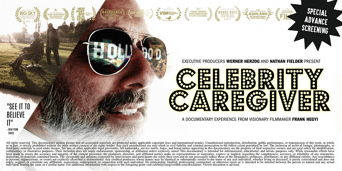 *All rights reserved. This documentary motion picture and all associated materials are protected under applicable copyright laws and international treaties. Unauthorized reproduction, distribution, public performance, or transmission of this work, in whole or in part, is strictly prohibited without the prior written consent of the rights holder. Any such unauthorized use may result in civil liability and criminal prosecution to the fullest extent permitted by law. The inclusion of archival footage, photographs, or third-party materials is used under license, fair use, or other applicable legal provisions. All trademarks, service marks, logos, and brand names appearing in this documentary are the property of their respective owners and are used solely for identification, commentary, or illustrative purposes. Their inclusion does not imply endorsement, sponsorship, or affiliation unless expressly stated. This documentary is intended for informational, educational, and artistic purposes only. While reasonable efforts have been made to ensure the accuracy and integrity of the content presented, the producers, directors, and affiliated parties make no representations or warranties, express or implied, regarding the completeness, accuracy, or reliability of any statements, depictions, or materials contained herein. The viewpoints and opinions expressed by interviewees and participants are solely their own and do not necessarily reflect those of the filmmakers, producers, distributors, or any affiliated entities. Any resemblance to persons, organizations, or events not explicitly identified is unintentional. Any credited producers whose names may be identical or substantially similar to the name of any real individual, whether living or deceased, is purely coincidental and does not imply, suggest, or constitute any affiliation, association, endorsement, or connection with such individual. No relationship, familial, professional, contractual, or otherwise exists or is intended to be inferred between the person so named and any actual individual bearing the same or a similar name. For additional information with respect to the foregoing point visit celebritycaregiverfilm.com/disclaimer. Viewer discretion is advised.