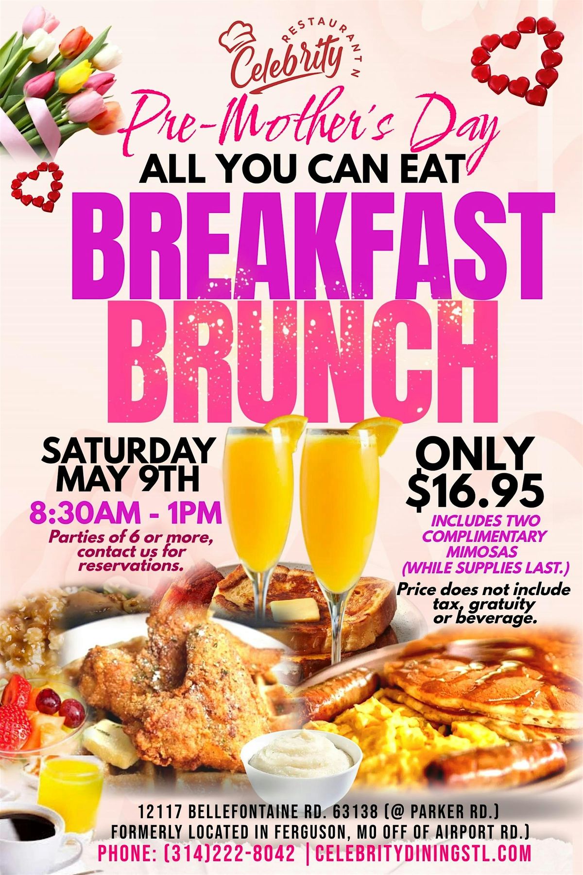 🌸✨✨🌸PRE-MOTHER'S DAY ALL YOU CAN EAT BREAKFAST BRUNCH AT CELEBRITY RESTAURANT