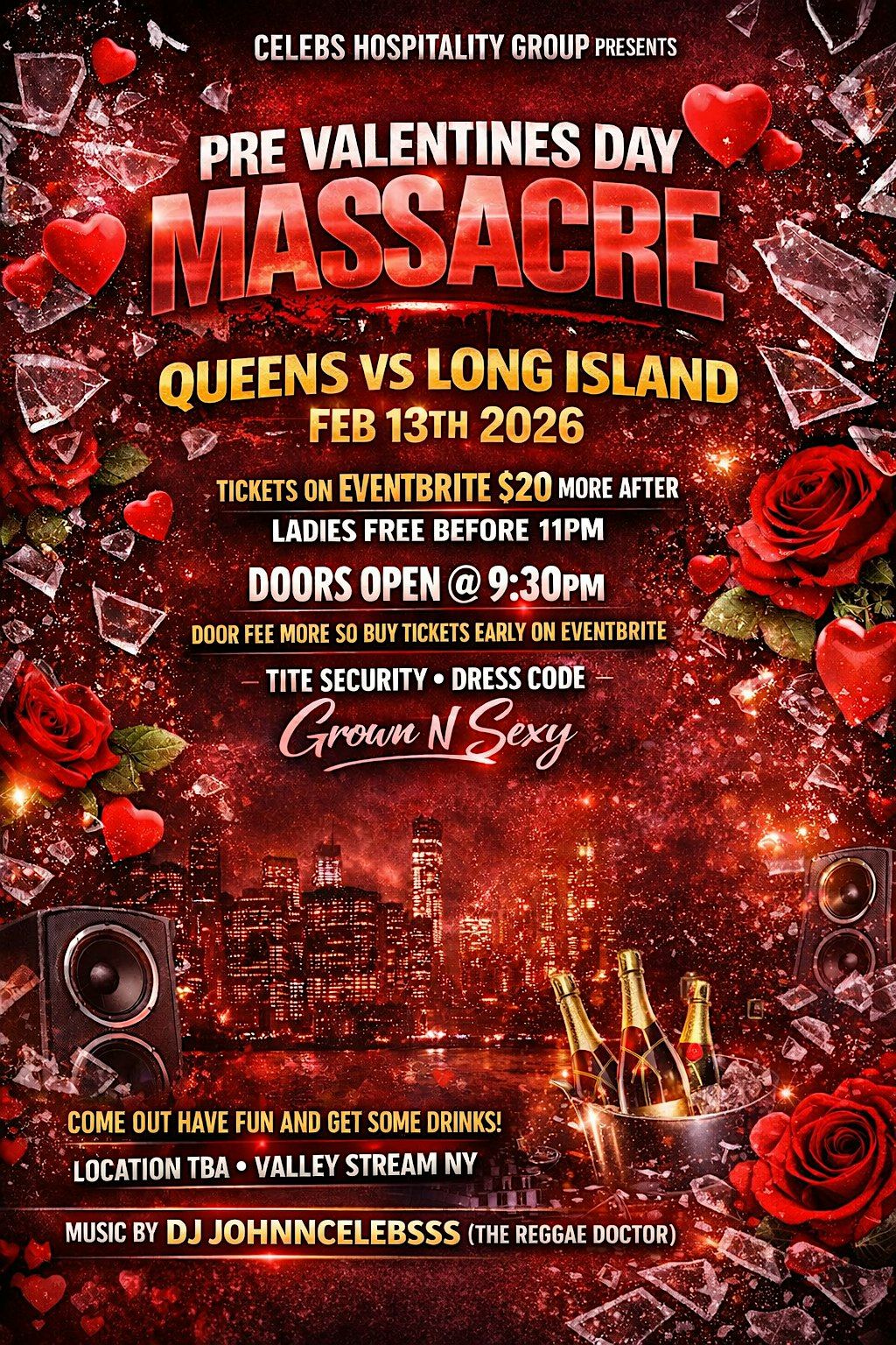 CELEBS HOSPITALITY GROUP PRESENT PRE VALENTINES DAY MASSACRE FEB 13TH 2026 MUSIC BY DJ JOHNNCELEBSSS • DJ DOZA • DJ CHUBBSS • DJ LOTTO
