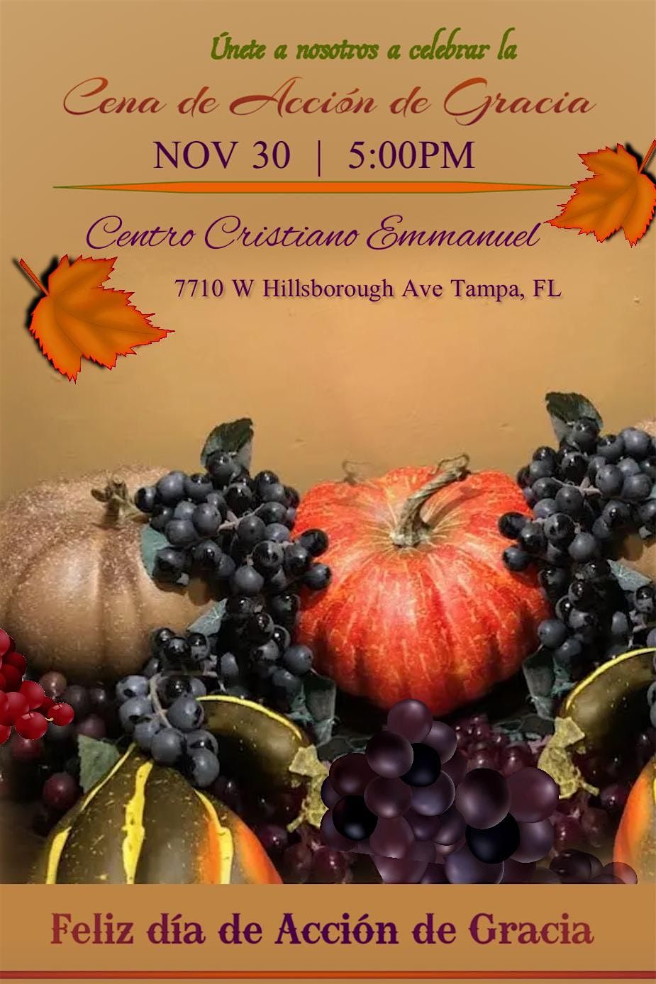 Únete a nosotros para una noche especial llena de comida deliciosa y buena compañía. Celebra el espíritu de gratitud en nuestro evento de Cena Acción de Gracia. ¡No te pierdas esta oportunidad de compartir momentos y agradecer juntos! ¡Asegura tu lugar ahora!