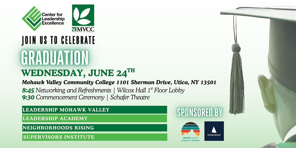 Get ready to celebrate the achievements of our future leaders at the Center for Leadership Excellence's Graduation Ceremony! Join us as we celebrate the graduates of CLE’s Class of 2026: Leadership Academy, Leadership Mohawk Valley, Neighborhoods Rising, and Supervisors Institute!
