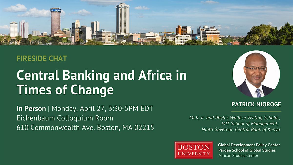 On Monday, April 27 from 3:30-5:00 PM, join us for an in-person fireside chat to explore these questions and more featuring Dr. Patrick Njoroge, MLK, Jr. and Phyllis Wallace Visiting Scholar at the MIT School of Management and ninth Governor of the Central Bank of Kenya. Co-hosted by the Boston University Global Development Policy Center, Frederick S. Pardee School of Global Studies and the African Studies Center, the event will feature a moderated fireside chat and opportunities for audience Q&A.