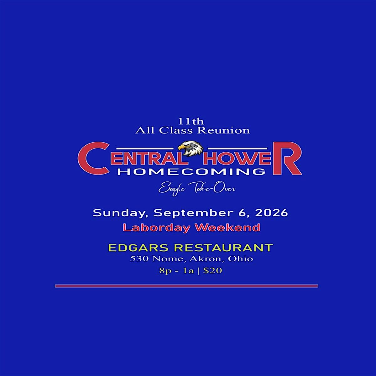 The 11th Central- Hower High School All Class Alumni Reunion Homecoming is happening: Sunday, September 6, 2026 | Laborday Weekend at Edgars Restaurant, 530 Nome Ave, Akron, Ohio