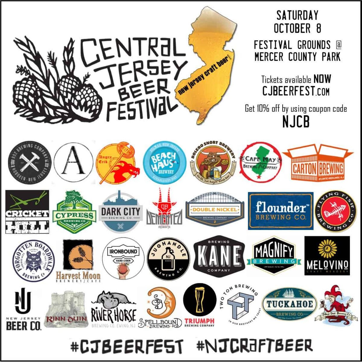 Join us on Saturday, October 14, 2023 at 12:00 pm for Central Jersey Beer Fest, at Mercer County Waterfront Park, New Jersey, United States of America, Don't miss your chance, Get your tickets for Central Jersey Beer Fest today!