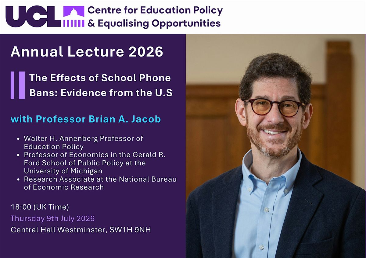 Professor Jacob will draw together evidence from across his research portfolio to provide insights into The Effects of School Phone Bans: Evidence from the U.S.