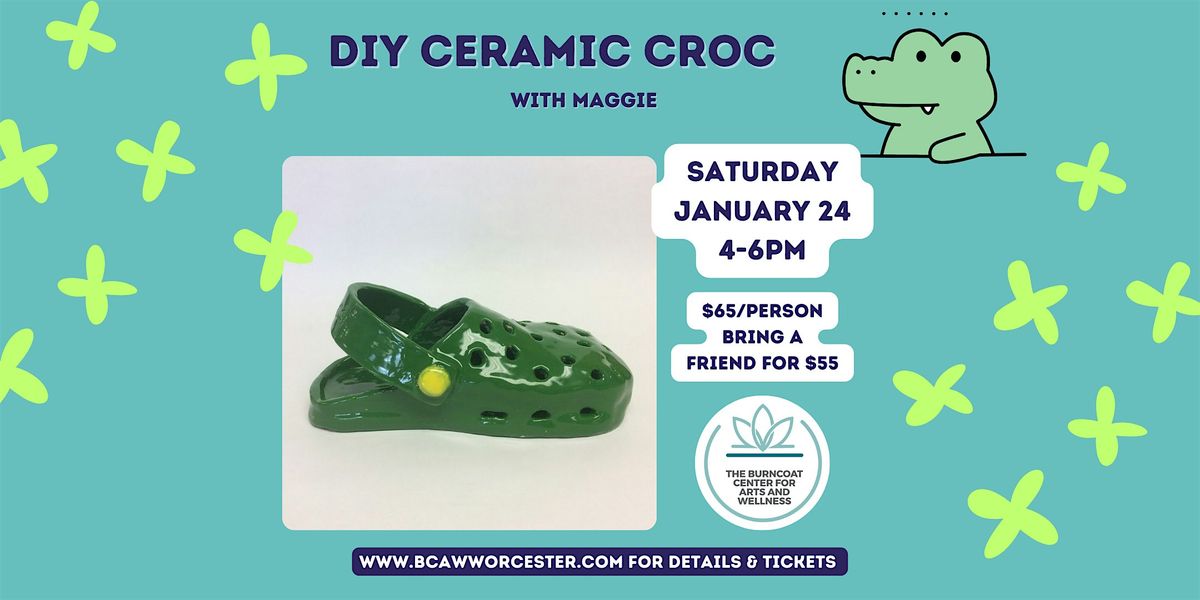 Join us for a delightfully unhinged ceramics class where you’ll hand-build your very own ceramic Croc (the shoe) from clay. Maggie will guide you through shaping, detailing, and texturing your Croc — complete with holes, charms, personality, and plenty of attitude.
