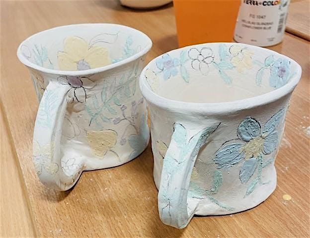 This class is suitable for beginners or those with some experience working in clay. This workshop is a great introduction to clay and learning how to make and attach handles as well as surface decoration. In the first class you will use hand building techniques to make 2 mugs with handles. In the second class you will decorate them with glaze before their final firing, to take home and fill with your favourite hot beverage.