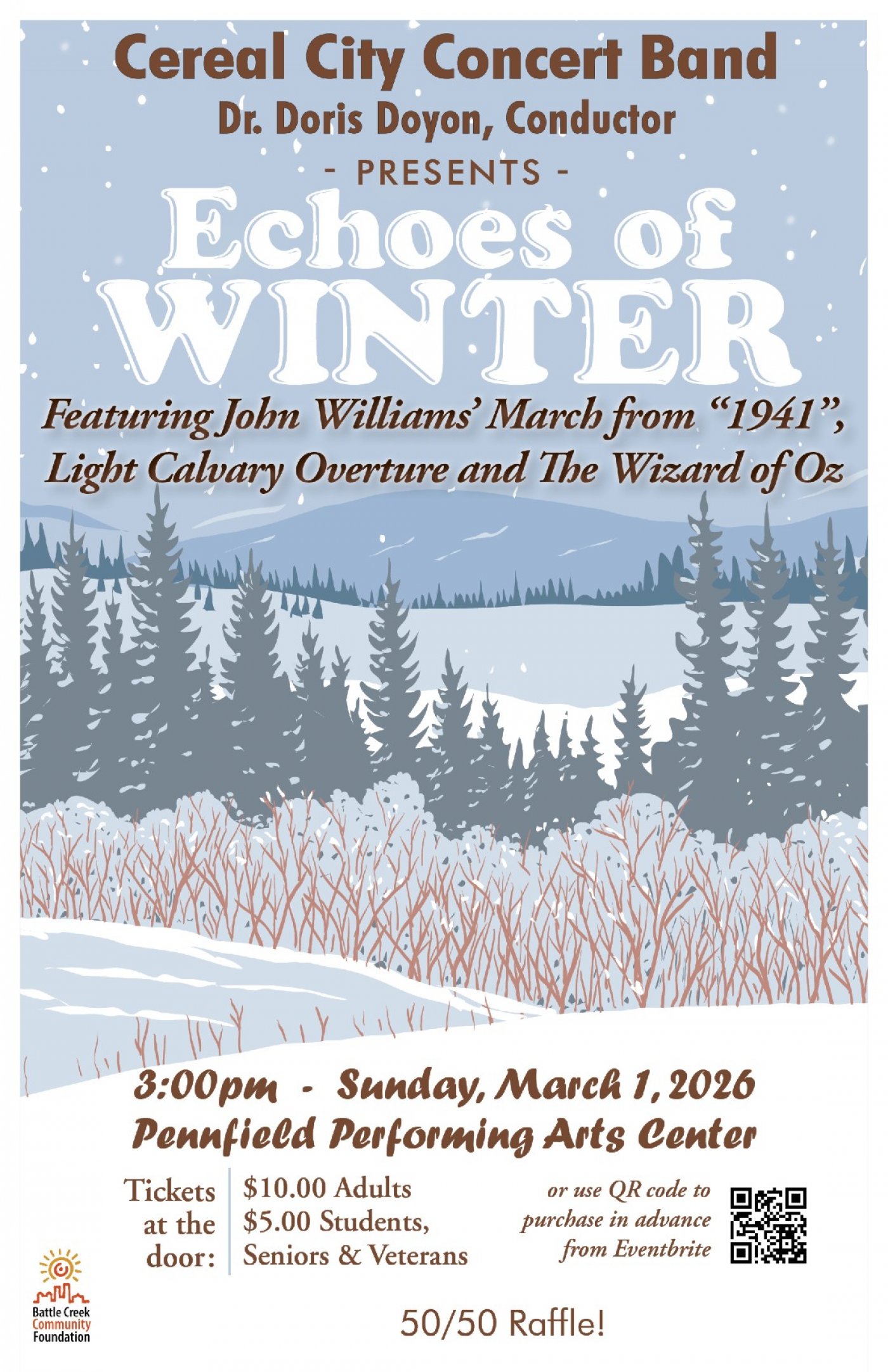 Experience the many moods of winter with the Cereal City Concert Band—from sweeping classical favorites to lively, toe-tapping swing and beloved movie music.