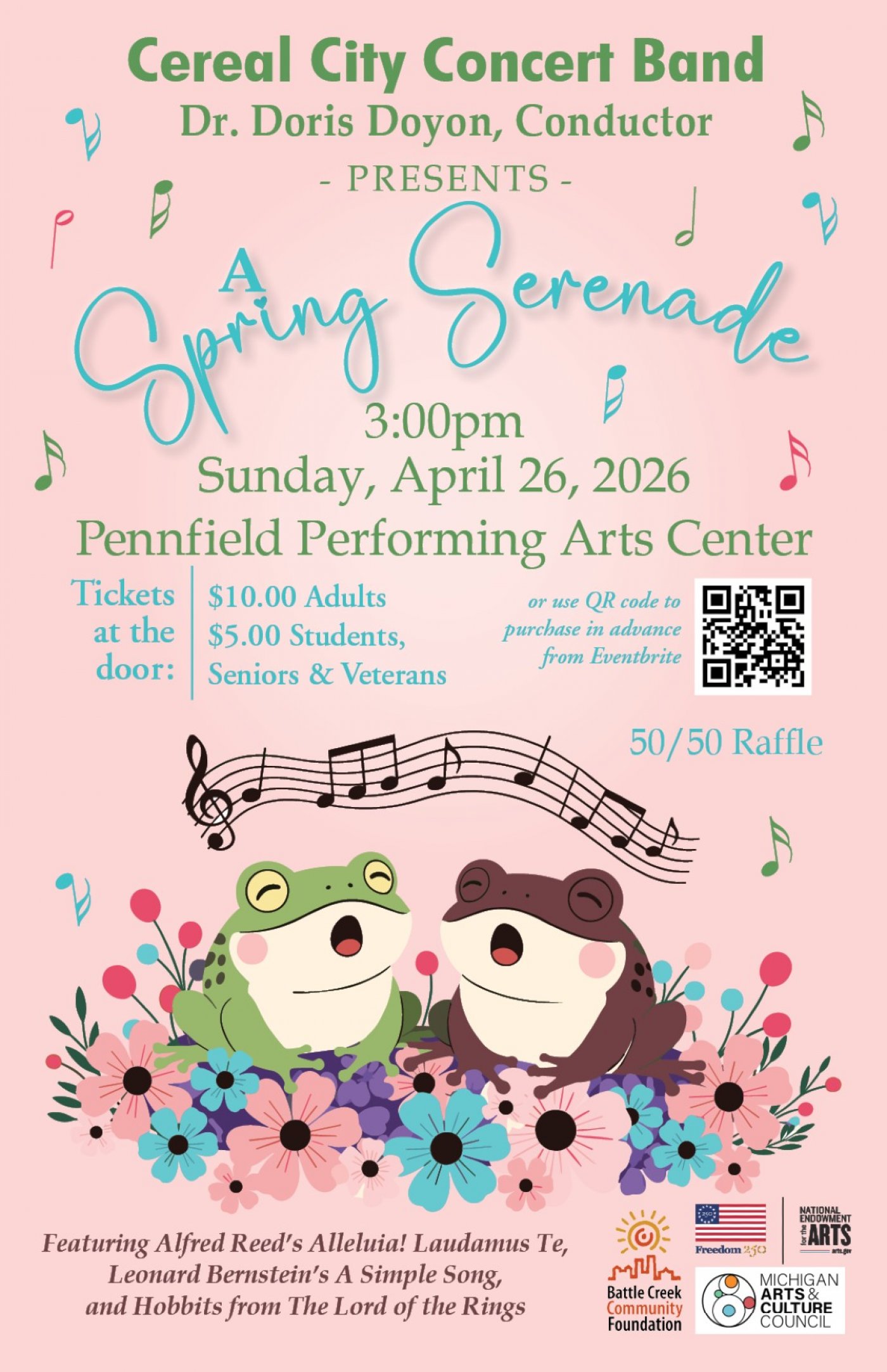 Join us for “Spring Serenade” on Sunday, April 26 at 3:00 PM at Pennfield Performing Arts Center in Battle Creek.