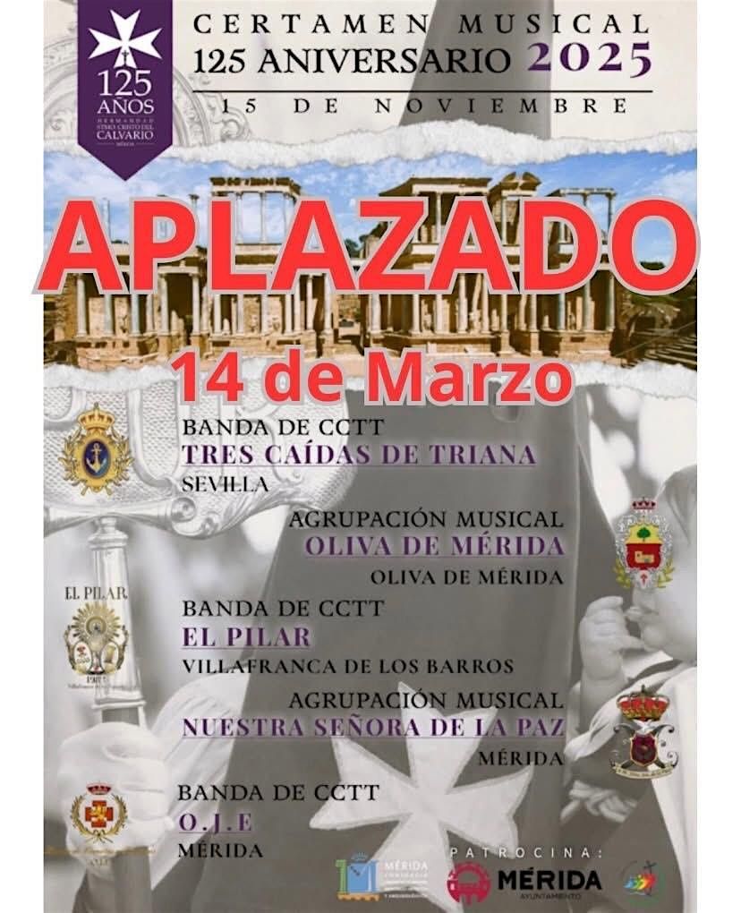 El 15 de noviembre de 2025, el Teatro Romano de Mérida será el escenario de un acontecimiento histórico: el Certamen de Bandas por el 125º Aniversario de la Hermandad del Calvario.