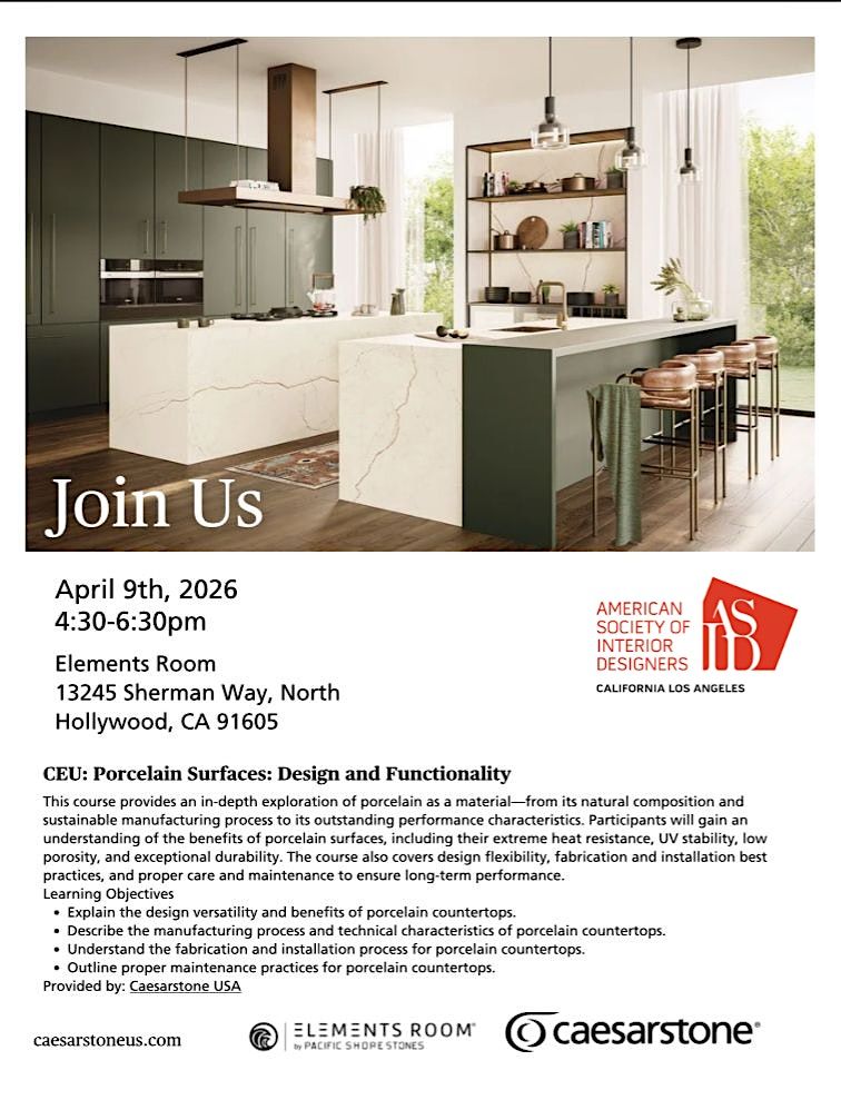 This course provides an in-depth exploration of porcelain as a material--from its natural composition and sustainable manufacturing process to its outstanding performance characteristics. Participants will gain an understanding of the benefits of porcelain surfaces, including their extreme heat resistance, UV stability, low porosity, and exceptional durability. The course also covers design flexibility, fabrication and installation best practices, and proper care and maintenance to ensure long-term performance.