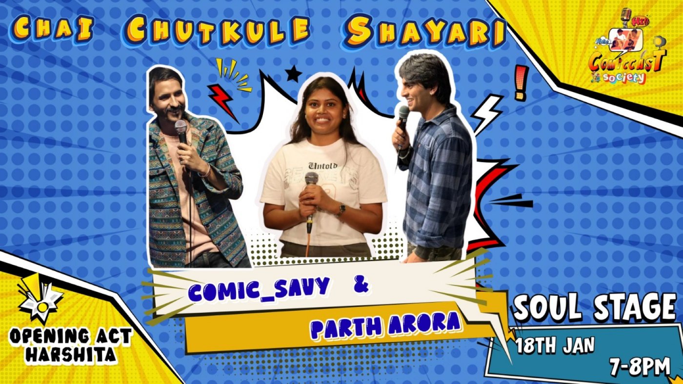Join us at Soul Staje for a delightful evening of laughter and soul-stirring poetry at "Chai, Chutkule & Shayari." Dive into a world of humor and emotions as we present a unique blend of comedy and poetry, promising 69 minutes of pure entertainment.