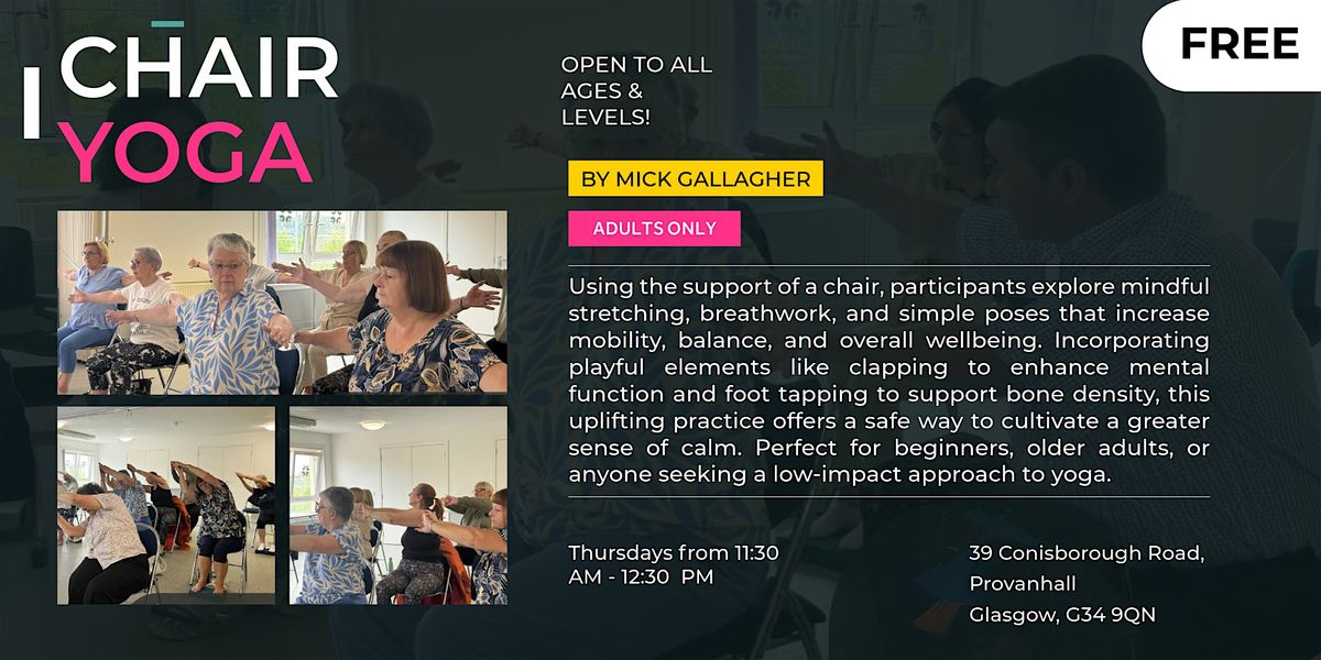 Using the support of a chair, participants explore mindful stretching, breathwork, and simple poses which increase mobility, balance and overall wellbeing.