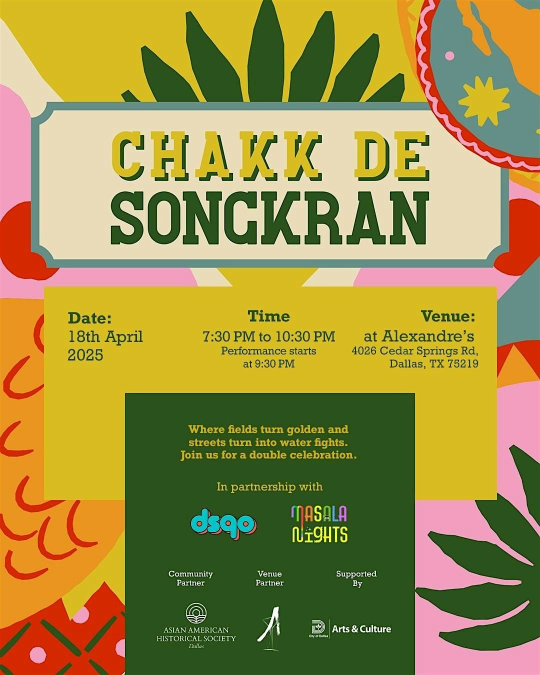 We’re celebrating TWO major South & Southeast Asian harvest & new year traditions under one roof — with dance, beats, drag, and desi vibes like never before. 💧💃🏽