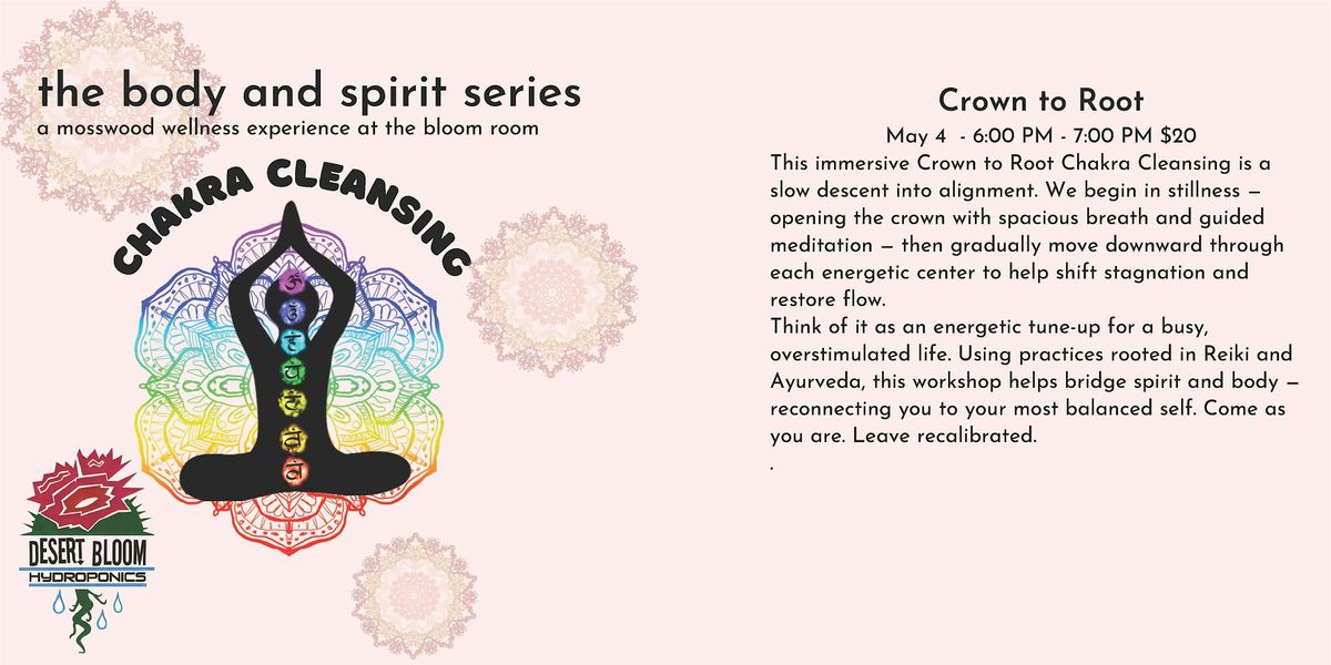 Join us for a relaxing and refreshing session to cleanse your chakras from the crown to the root. This in-person event will help you balance your energy and feel renewed.