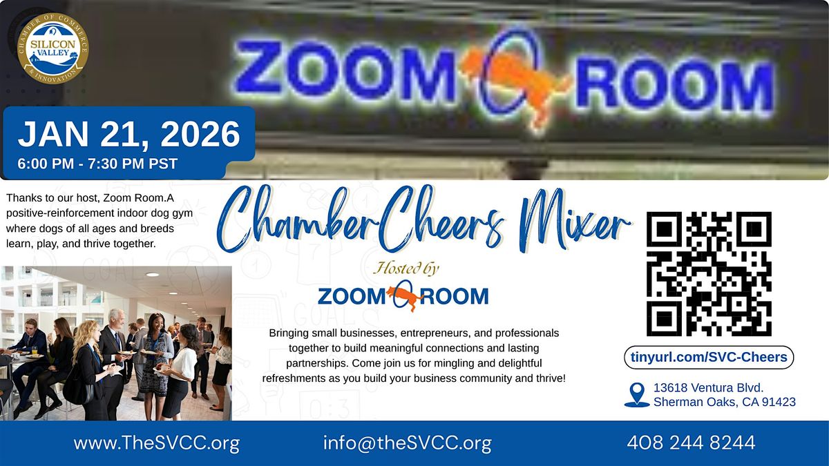 We’re excited to host our monthly Chamber Cheers Mixer at Zoom Room Santa Clara — a unique, positive-reinforcement indoor dog gym for dogs of all ages and breeds. From agility and obedience classes to playgroups, parties, and community events, Zoom Room is all about building stronger bonds between people and their dogs through safe socialization, enrichment, and training. With small class sizes, flexible scheduling, and performance-based advancement, they truly stand out in our community.
