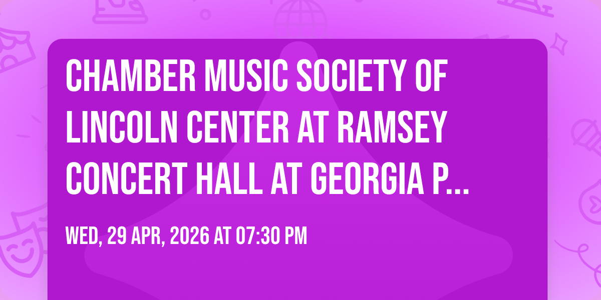 π Welcome to Chamber Music Society of Lincoln Center at Ramsey Concert Hall at Georgia Performing Arts Center, where the impossible becomes possible and dreams take flight! ποΈ Join us at Ramsey Concert Hall at Georgia Performing Arts Center in the heart of Athens, GA for an event that will redefine your expectations. π On April 29th, 2026 at 07:30 PM, witness the transformation of space and time into something truly magical. β¨ It's a curated experience combining the best of innovation, entertainment, and community spirit, creating moments that will be remembered for years to come. Whether you're a first-time visitor or a seasoned enthusiast, prepare to be amazed. π Book now to ensure your place in this unforgettable experience!