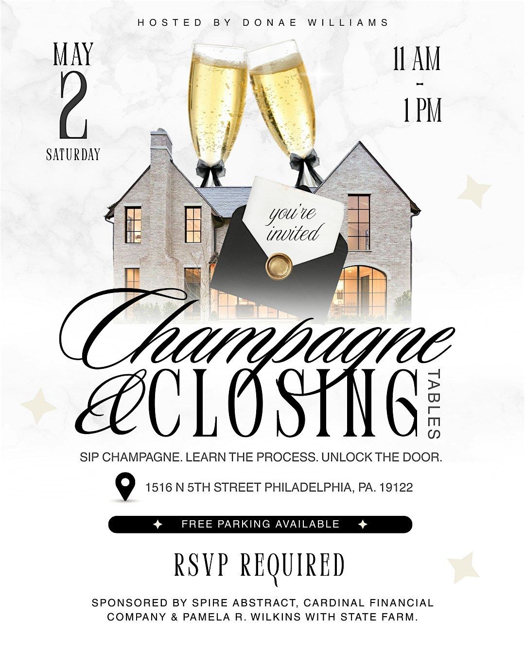 Hosted by Donae Williams, this intimate event takes place at a real title company, giving you a behind-the-scenes look at what it truly means to “close” on a home. You’ll sip champagne, connect with industry professionals, and gain the knowledge you need to confidently take your next step.