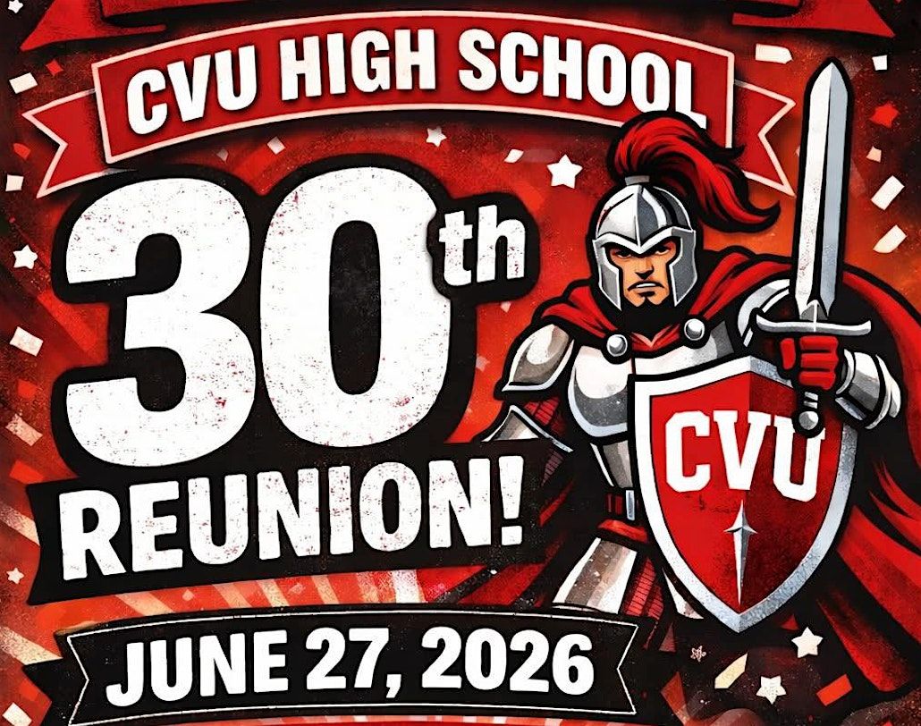 Hey there, CVU Class of '96! It's time to celebrate 30 years since we walked those halls. Join us for an unforgettable in-person reunion filled with laughter, memories, and catching up with old friends. Don't miss this chance to catch up and reminisce about the good times we shared back in high school. Let's make new memories together and celebrate where life has taken us since graduation. See you there!