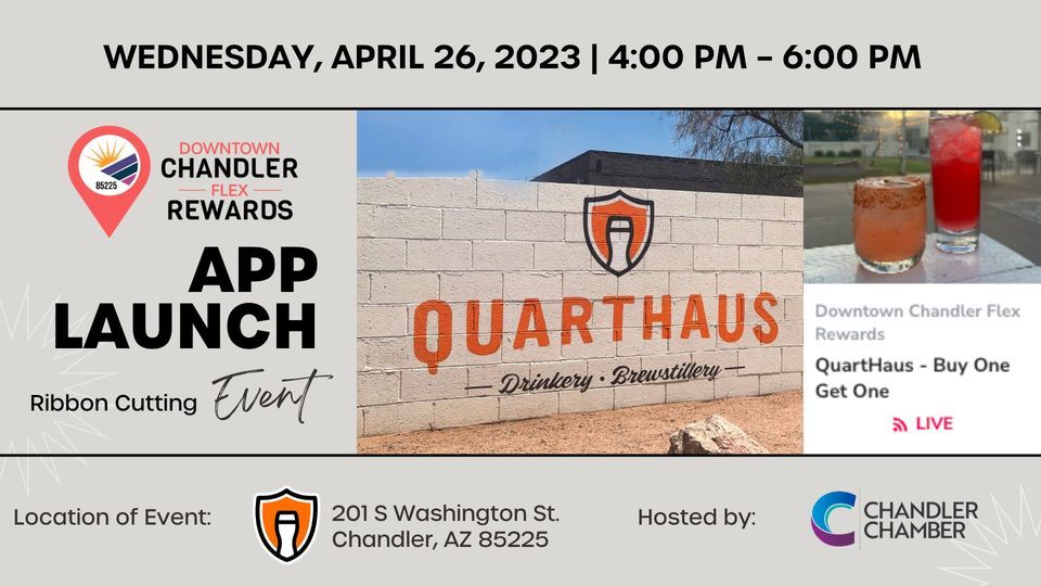 ? Join us for the official Chandler Flex Rewards app launch ribbon cutting at QuartHaus on April 26th. ?Sponsored by Chandler Chamber of Commerce