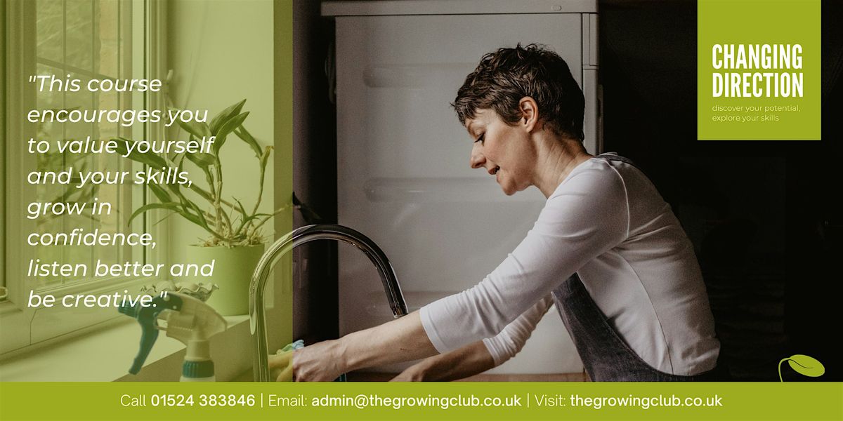 Changing Direction is a 6 session course that helps you identify existing skills and build confidence and communication skills. You will develop problem solving skills, explore new opportunities, and find focus for your future. Delivered in small groups, this course is fun, creative and interactive enabling women to be themselves in a safe and non judgemental environment.