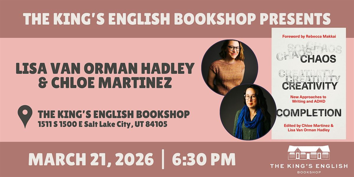 The King's English is honored to host authors, Lisa Van Orman Hadley and Chloe Martinez to celebrate the release of their new book, Chaos, Creativity, Completion: New Approaches to Writing and ADHD.
