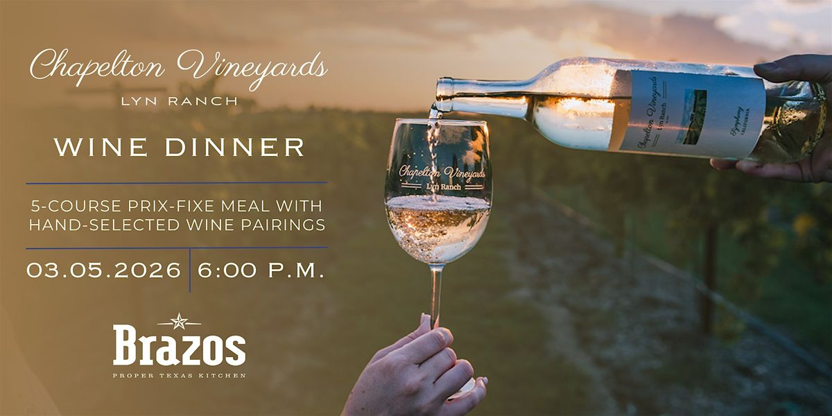 Join us on March 5th for a flavorful celebration of Texas craftsmanship and global inspiration at our Chapelton Vineyards Wine Dinner. This five-course experience showcases thoughtfully curated pairings featuring Chapelton’s estate-grown Texas wines alongside globally inspired selections, each complemented by dishes crafted by our award-winning chefs. Together, wine and cuisine tell a story of passion, place, and craftsmanship.
