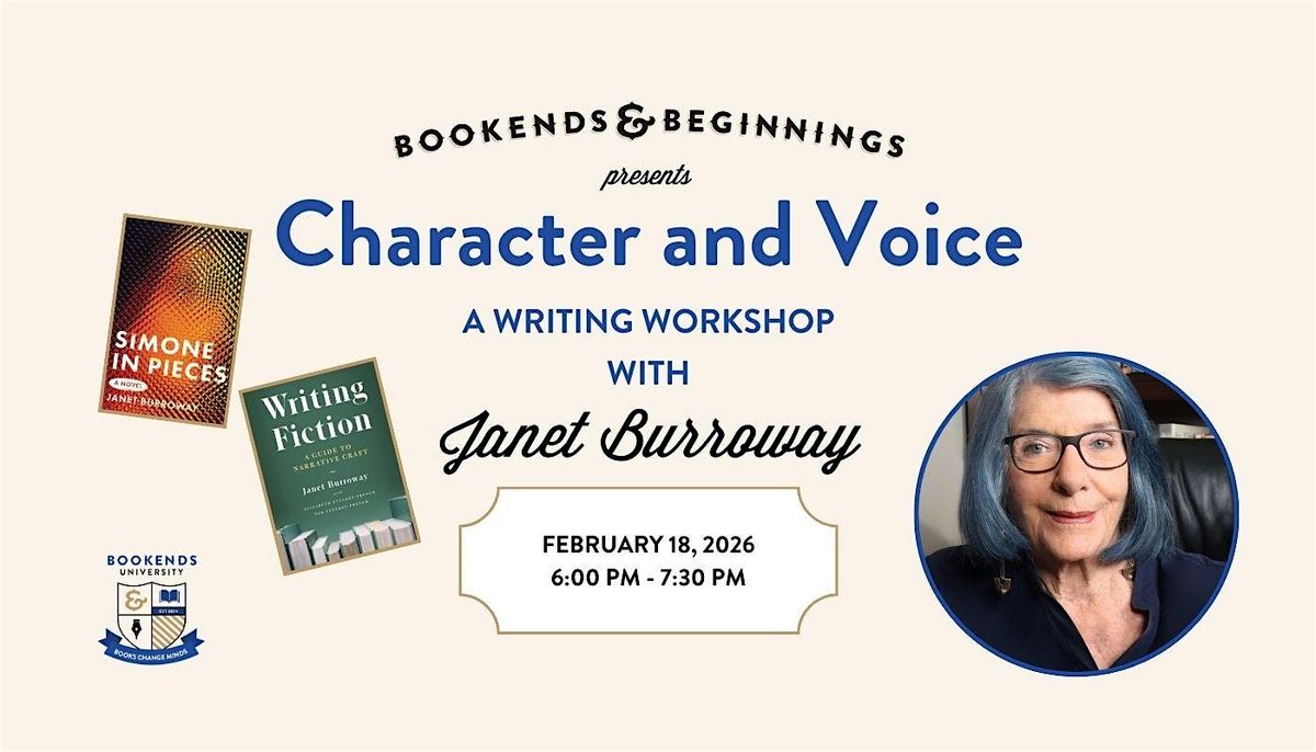In this workshop, acclaimed writer Janet Burroway will lead participants in creating memorable characters with emphasis on their unique voice. Burroway will use examples from her new novel, Simone in Pieces, to illustrate how voice helps establish a character's history, desires, thoughts, and emotions. Participants will spend time with playful writing prompts meant to tap into their character's voice.