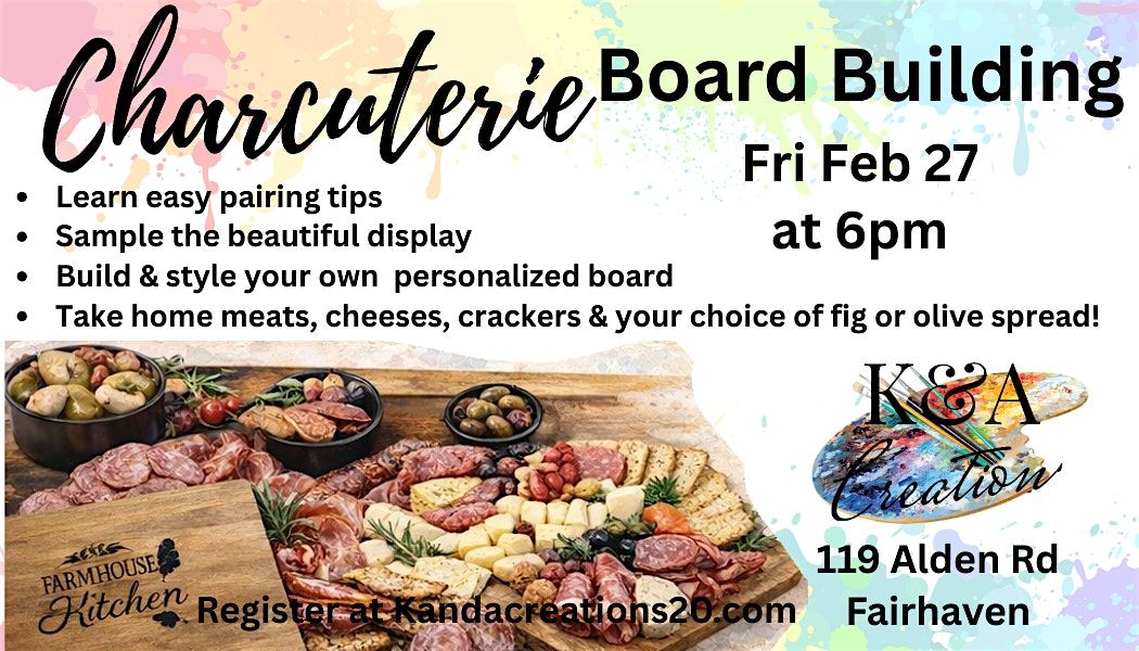 You will leave with a 4oz package of imported salami, a 4-6oz piece of imported cheese, a package of crostini, and your choice of fig spread or olive spread to enjoy a beautiful charcuterie experience at home on your new board.