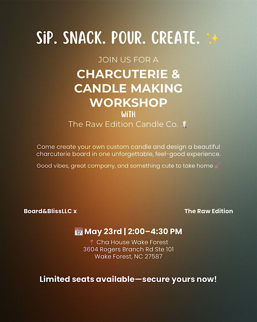 • Your custom candle + charcuterie creation to take home