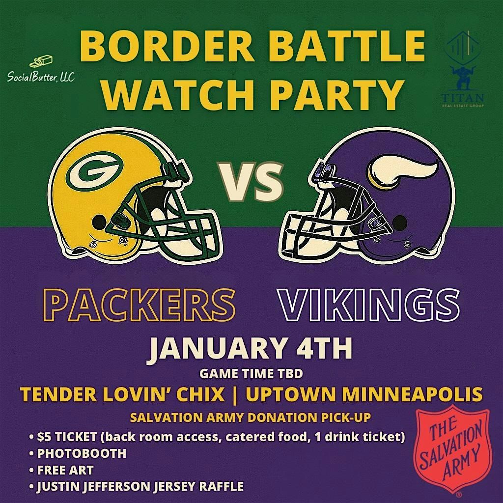 Join us for the Border Battle Watch Party as the Vikings take on the Packers in one of the most anticipated matchups of the season! We’re turning this game day into an opportunity to support our community — all proceeds will be donated to The Salvation Army in downtown Minneapolis.