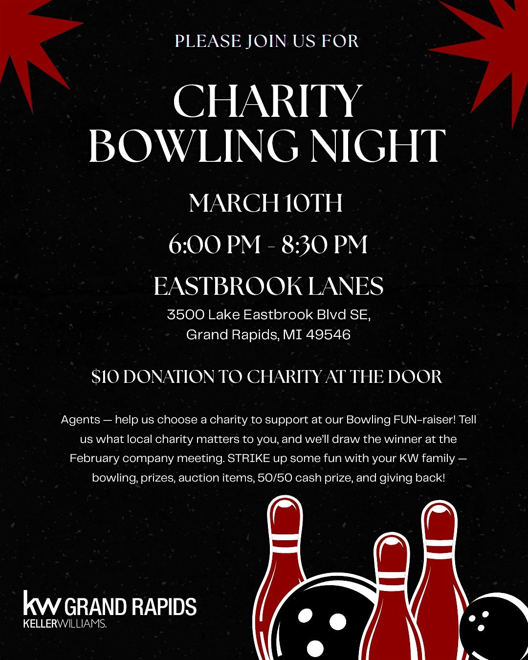 $10 donation to charity at the door! Agents, help us choose a charity to support at our Bowling FUN-raiser!