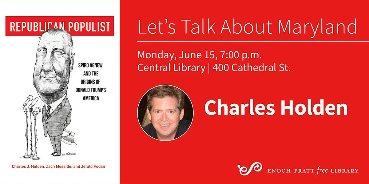 Charles Holden will discuss his book, Republican Populist, as part of the Pratt Maryland Department’s Let’s Talk About Maryland author series.