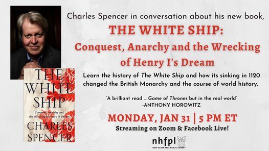 Join our Ives Adult Services department for an evening conversation with Lord Charles Spencer about The White Ship, about how the sinking of one ship affected the course of European history.NHFPL Adult Services in conversation with Charles Spencer, 9th Earl Spencer