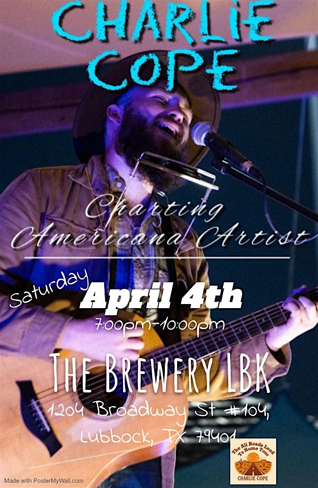 Live music that fits the room. Charlie Cope brings an intimate acoustic show to The Brewery LBK in Lubbock on April 4, blending original songs with stories that pull you in and don’t let go.